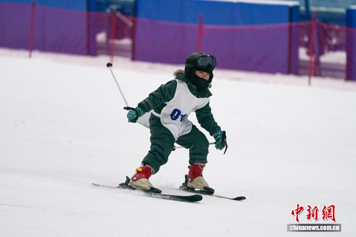 图为教死们正在举动现场停止平地滑雪比拼。中新社记者 赵宇航 摄